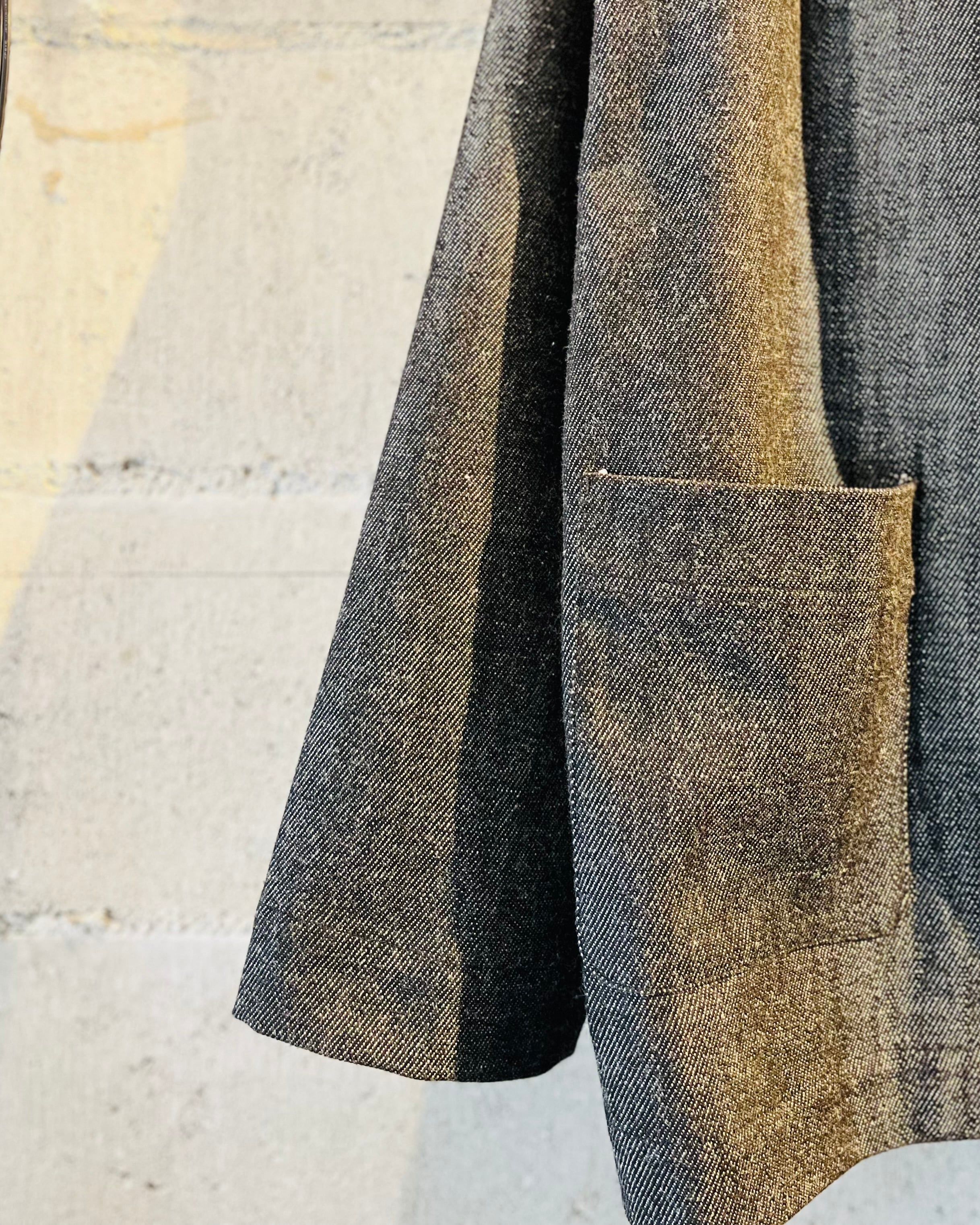 縦糸、横糸のコントラストが美しいブラックデニム、ゆったりとしたシルエット。