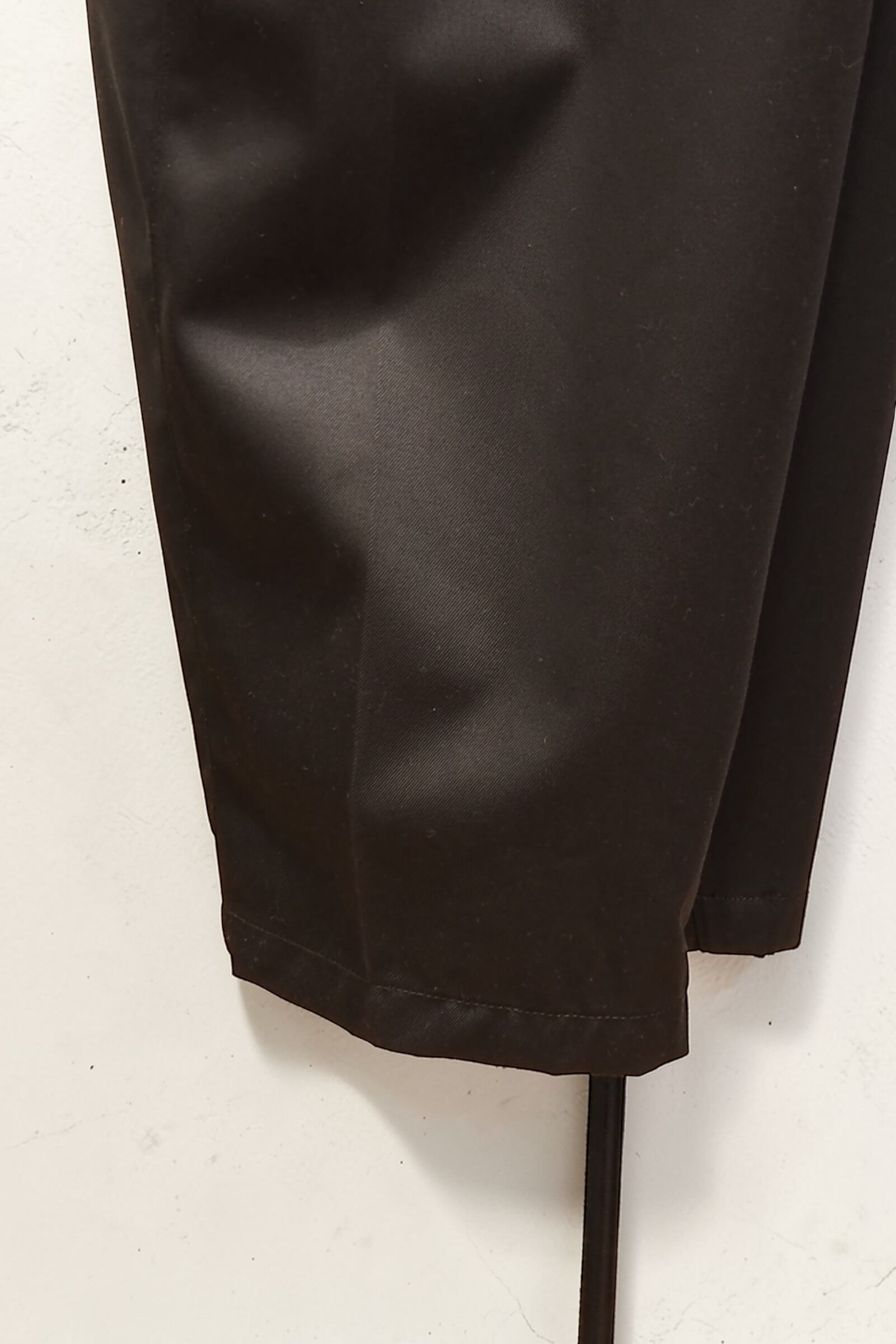 このブラックは、ただの黒ではありません。ややオリーブを含んだような深みのある色調に、上質な艶と光沢を帯びたウエストポイント生地。動きに合わせて鈍く光り、光の当たり方で表情を変えます。