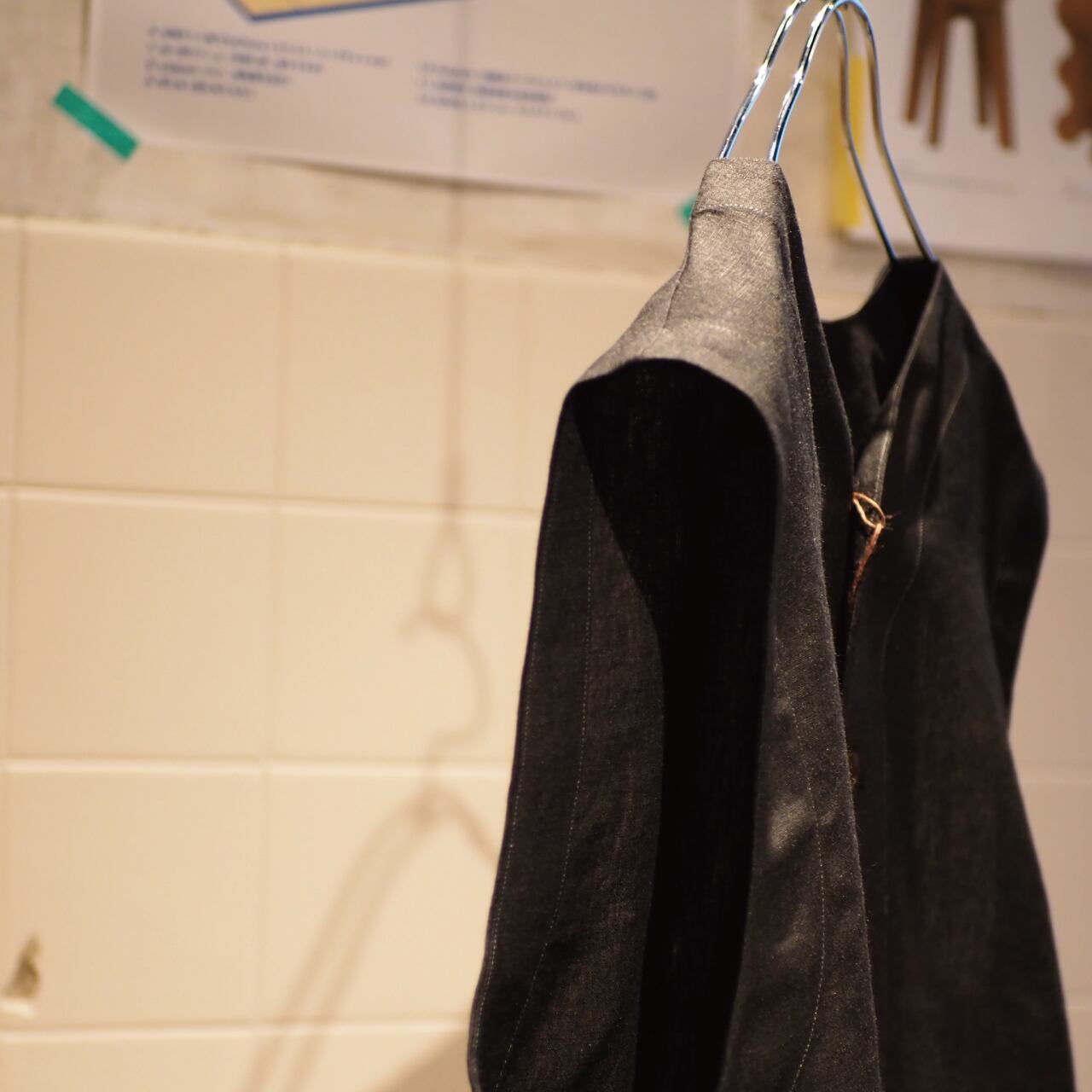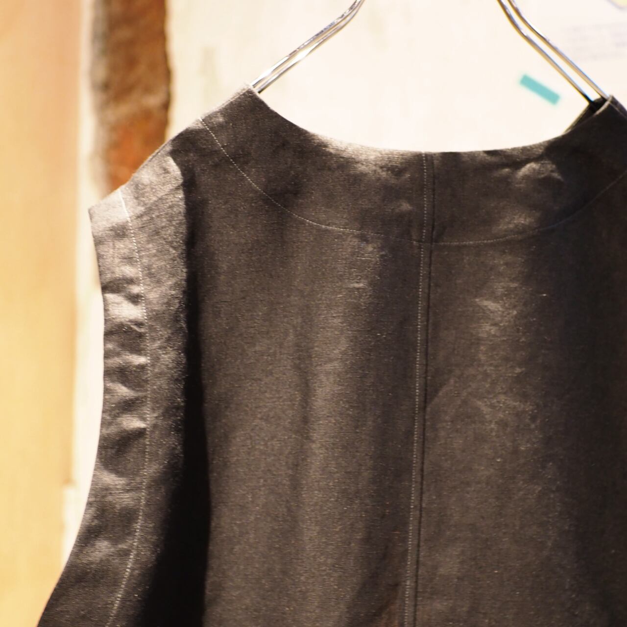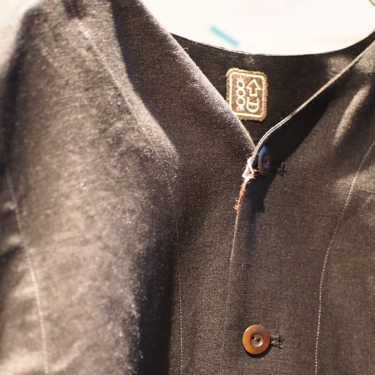 首元の詰まり方やボタンの配置も少し独特で、シンプルなのにどこか引っかかる。