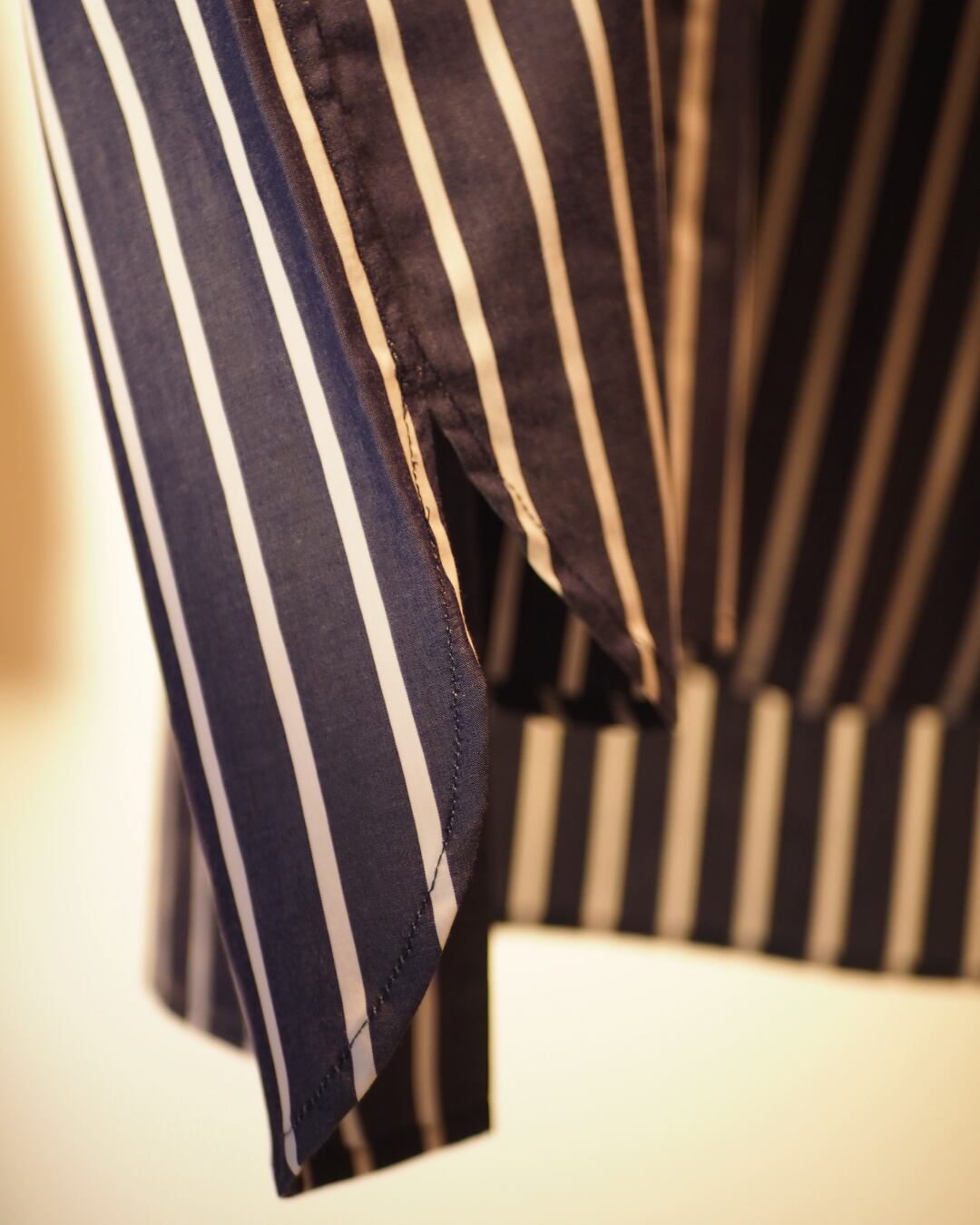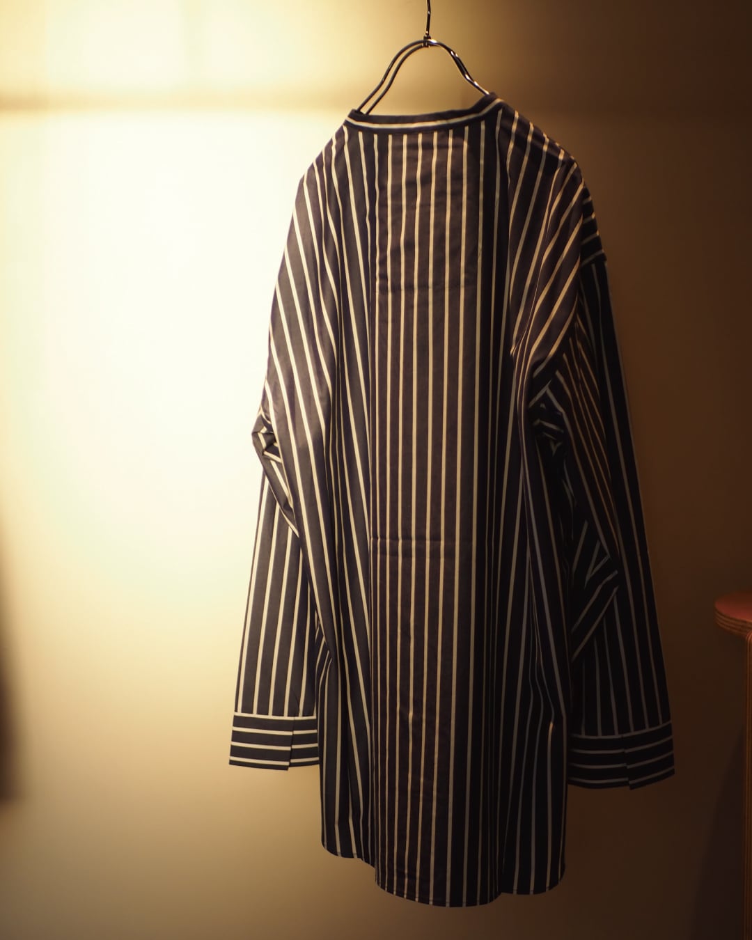 サイズ感やアイテムへの考え方がつくり手と一緒でびっくりしました。台襟のみのバンドカラー、袖のゆとり、ユニセックスな感覚。これ!ってなるシャツです。