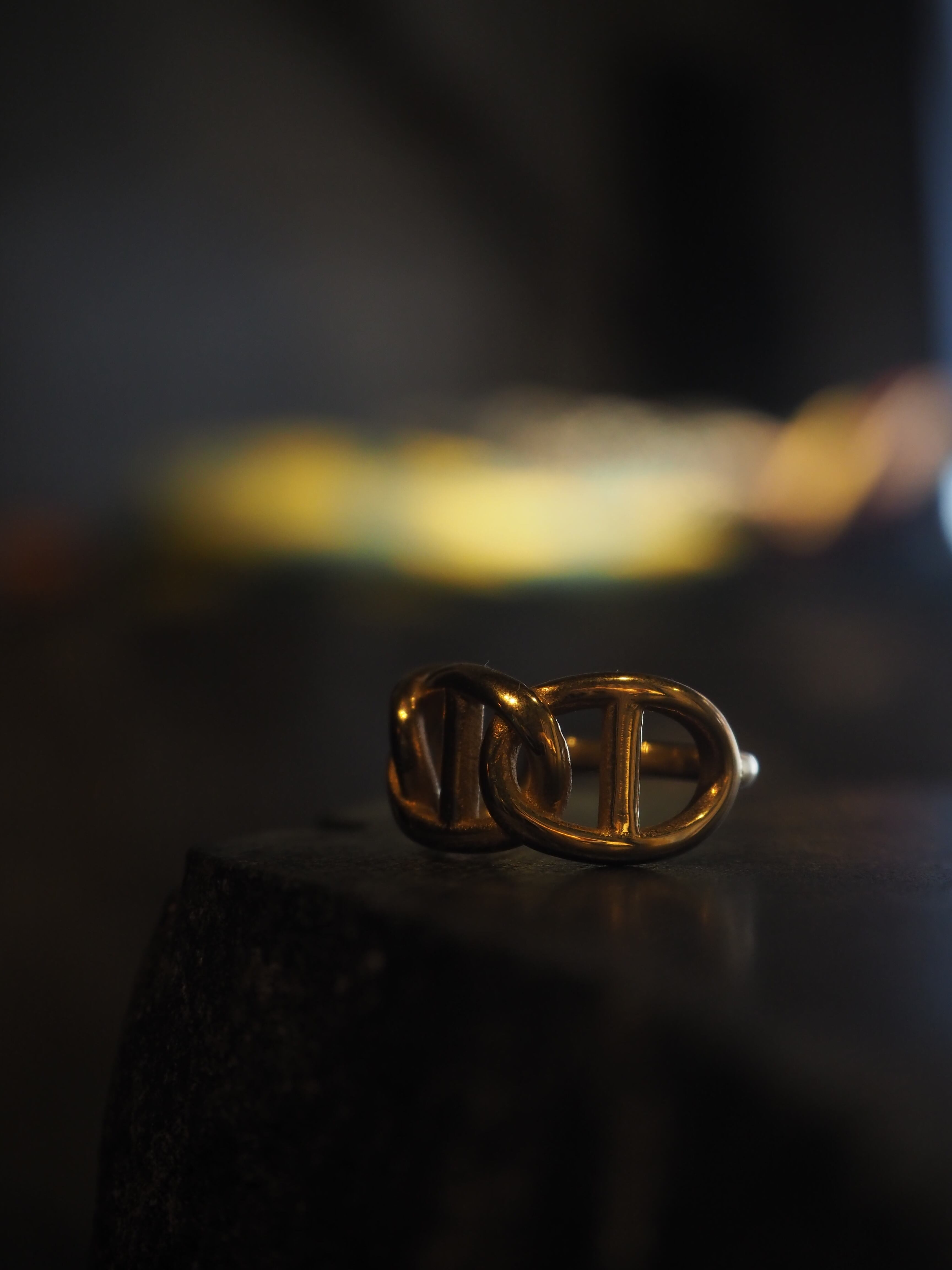 チェーンのモチーフ側はもちろん魅力的ですが、後ろ側の華奢なデザインも美しいリングです。